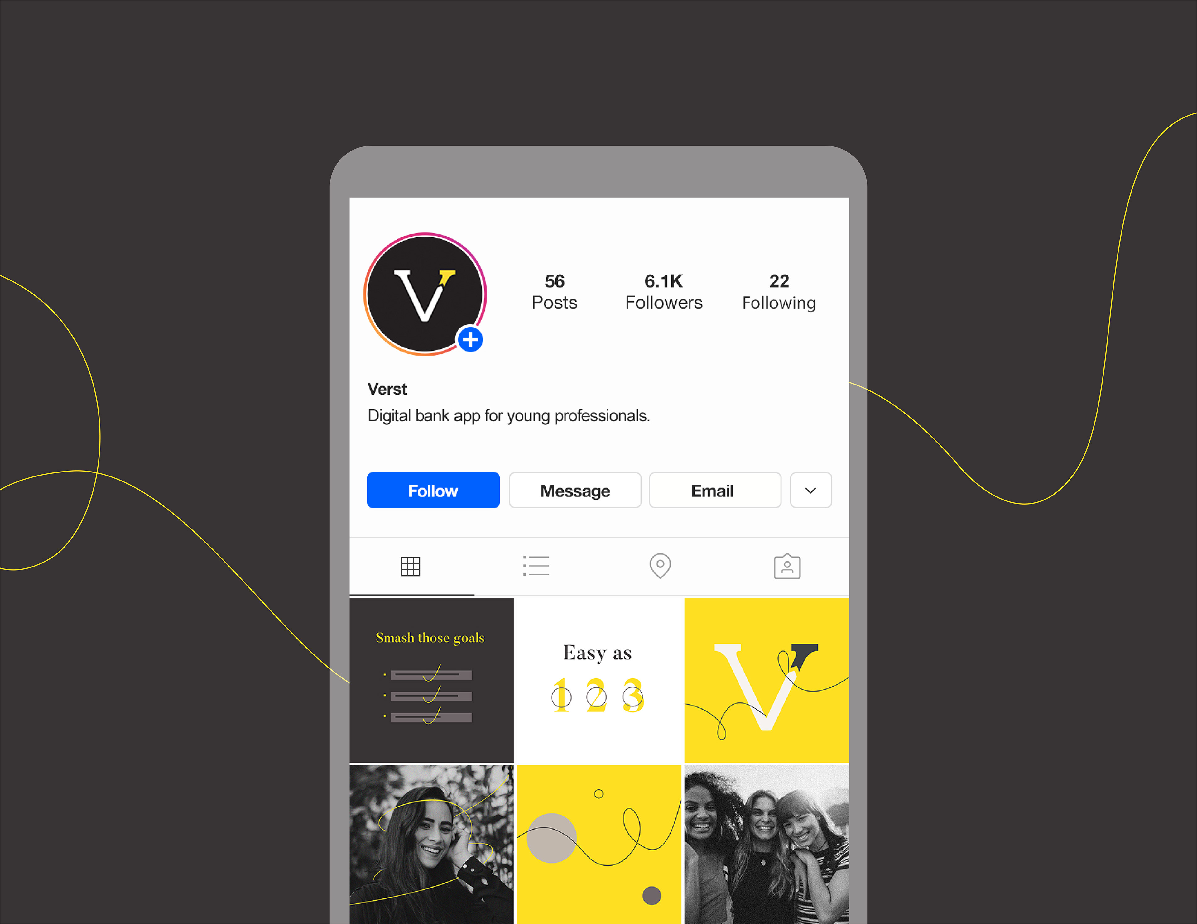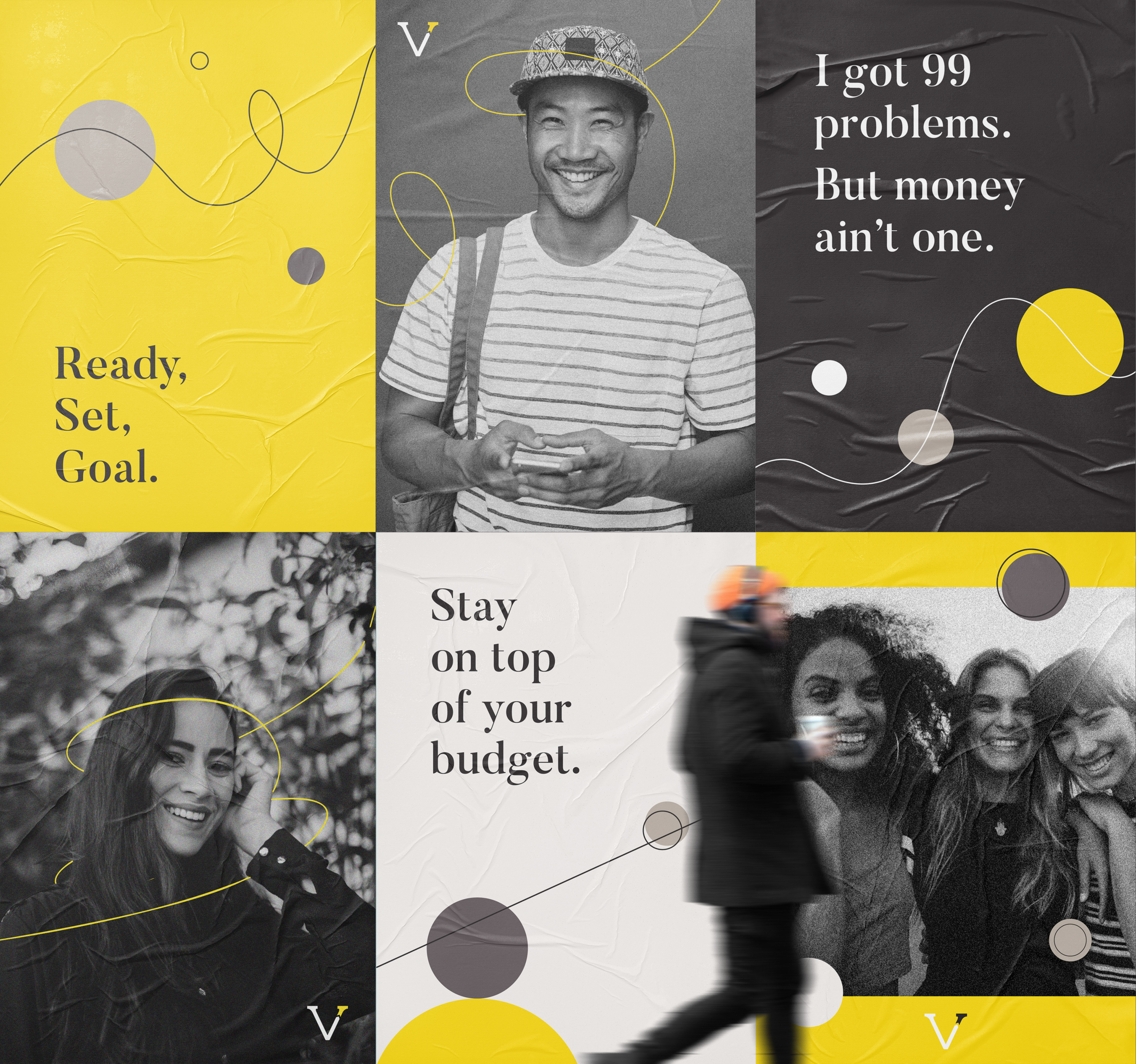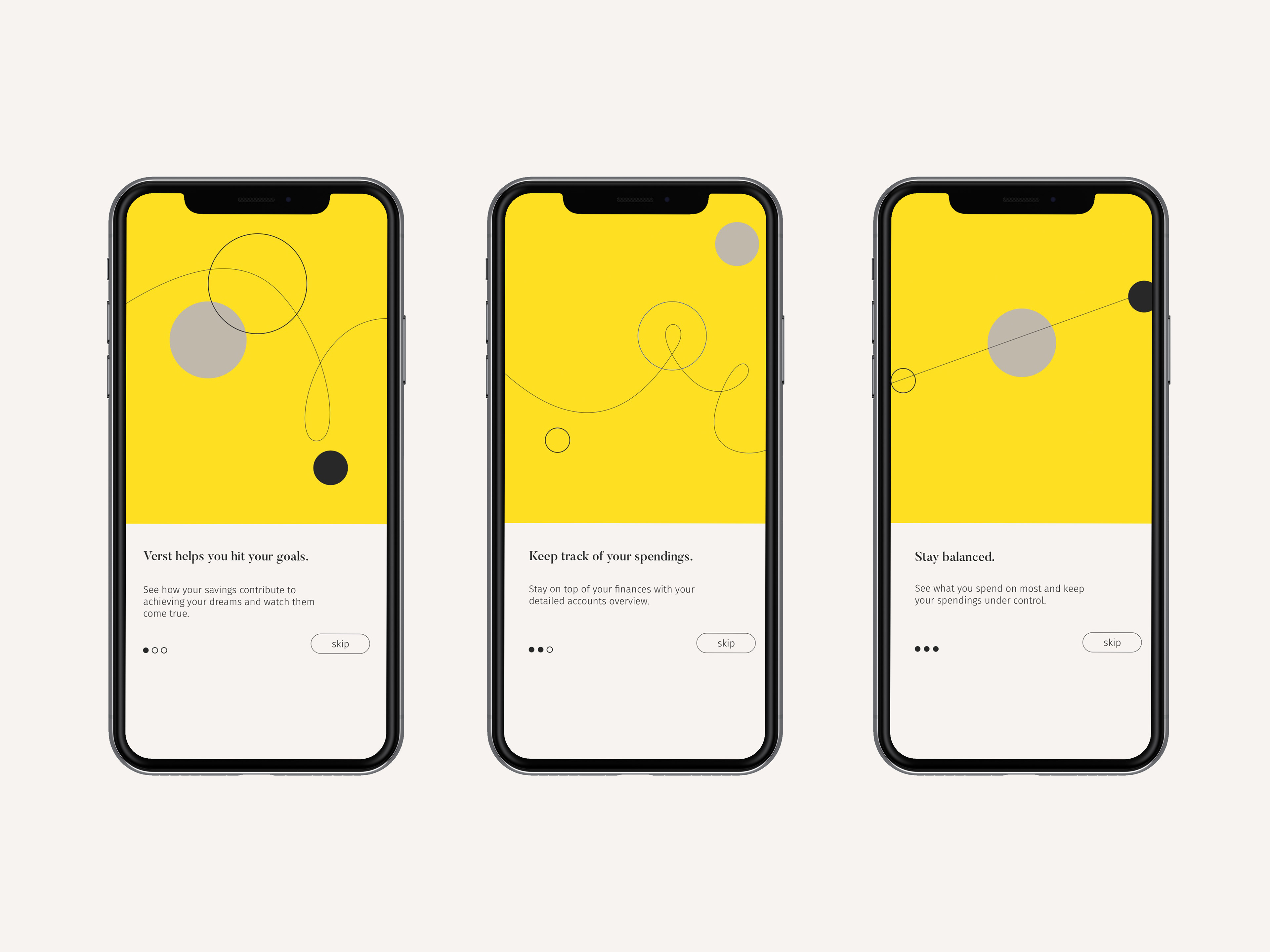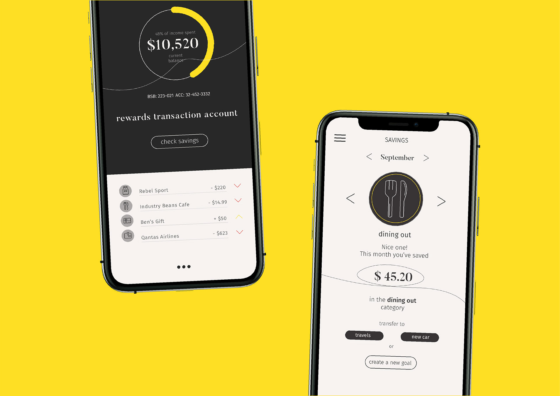 Digital banking app designed to help young professionals easily hit their goals and stay on top of their budget. The idea was to design an app that is not overly complicated and visually pleasing, with a vibrant colour palette and a serif typeface that gives the brand a more mature feel. Curved line element reflect the ease that the app brings to finance management.